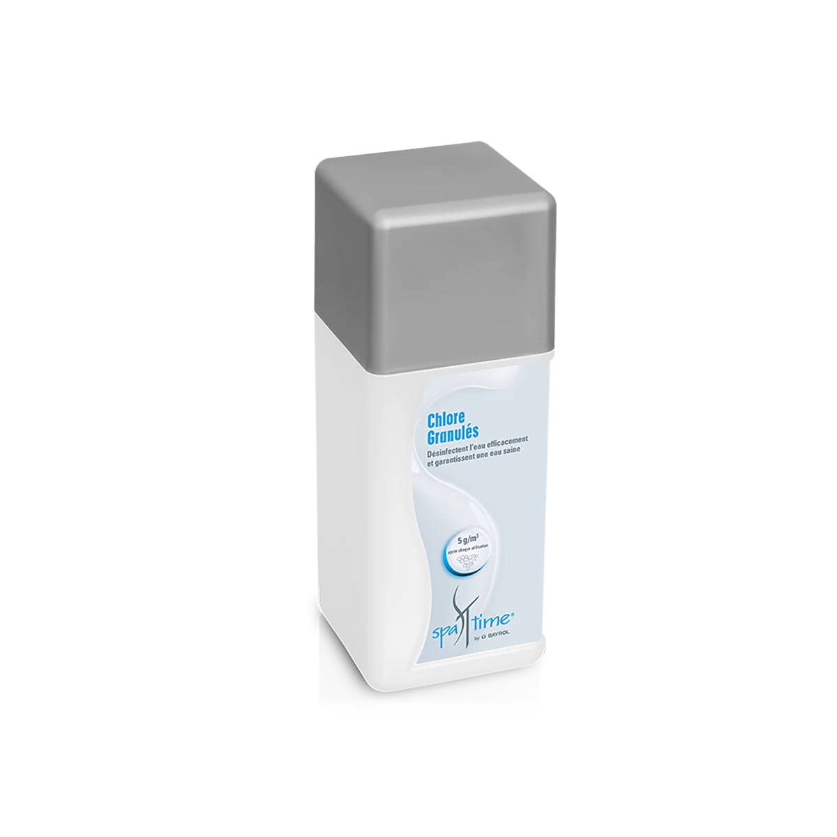 Très concentrés en chlore actif, les granulés de chlore Spa Time se dissolvent rapidement sans laisser de résidus et détruisent bactéries, turbidités et impuretés dans le bassin.
