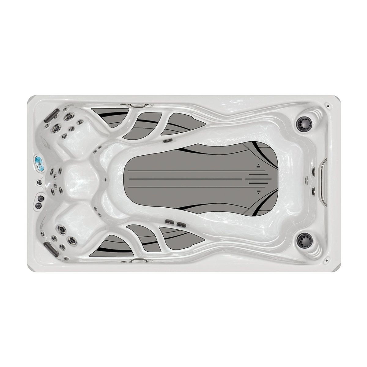 La coque est de couleur Sterling Silver et vous aurez le choix sur la couleur de l’habillage, Espresso ou Graphite Grey. Un kit fitness est inclus pour l’achat de ce spa et vous aurez la possibilitĂ© de prendre, en option, un kit surface antidĂ©rapante.